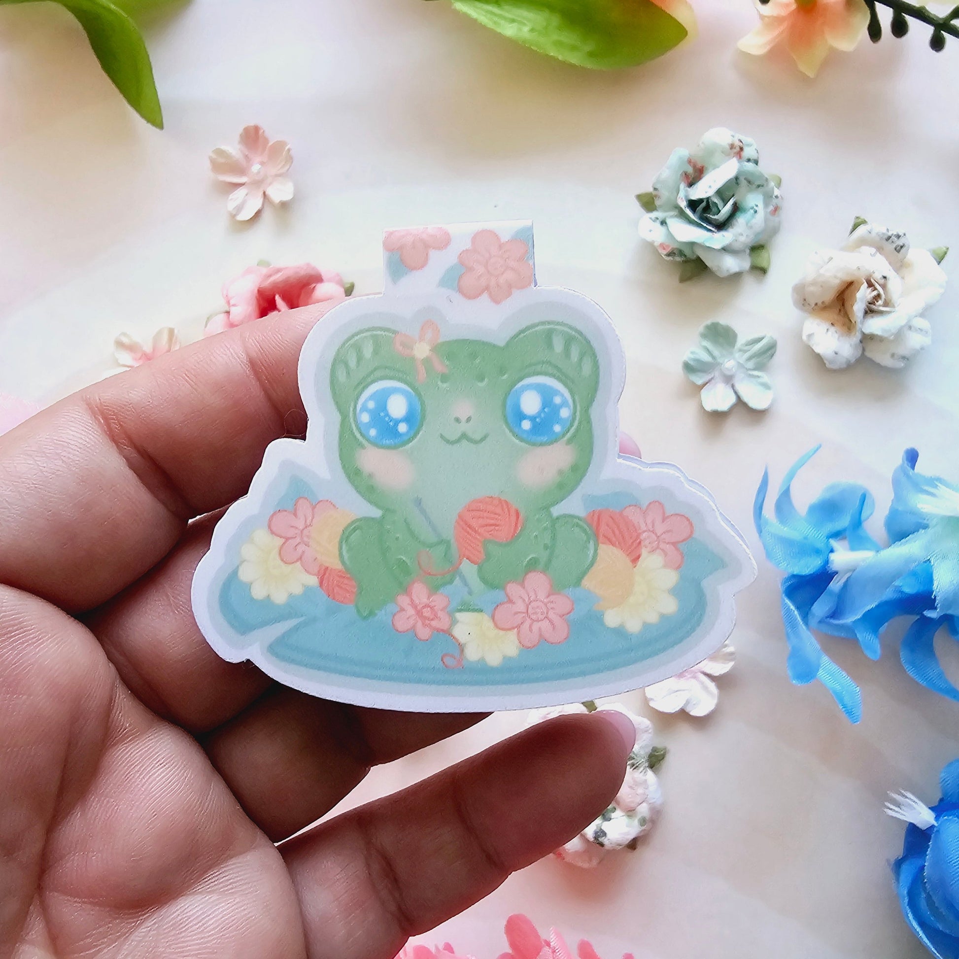 Introducing our magnetic bookmark featuring an adorable froggie design in a kawaii style. This charming companion will bring a touch of whimsy to your reading adventures.